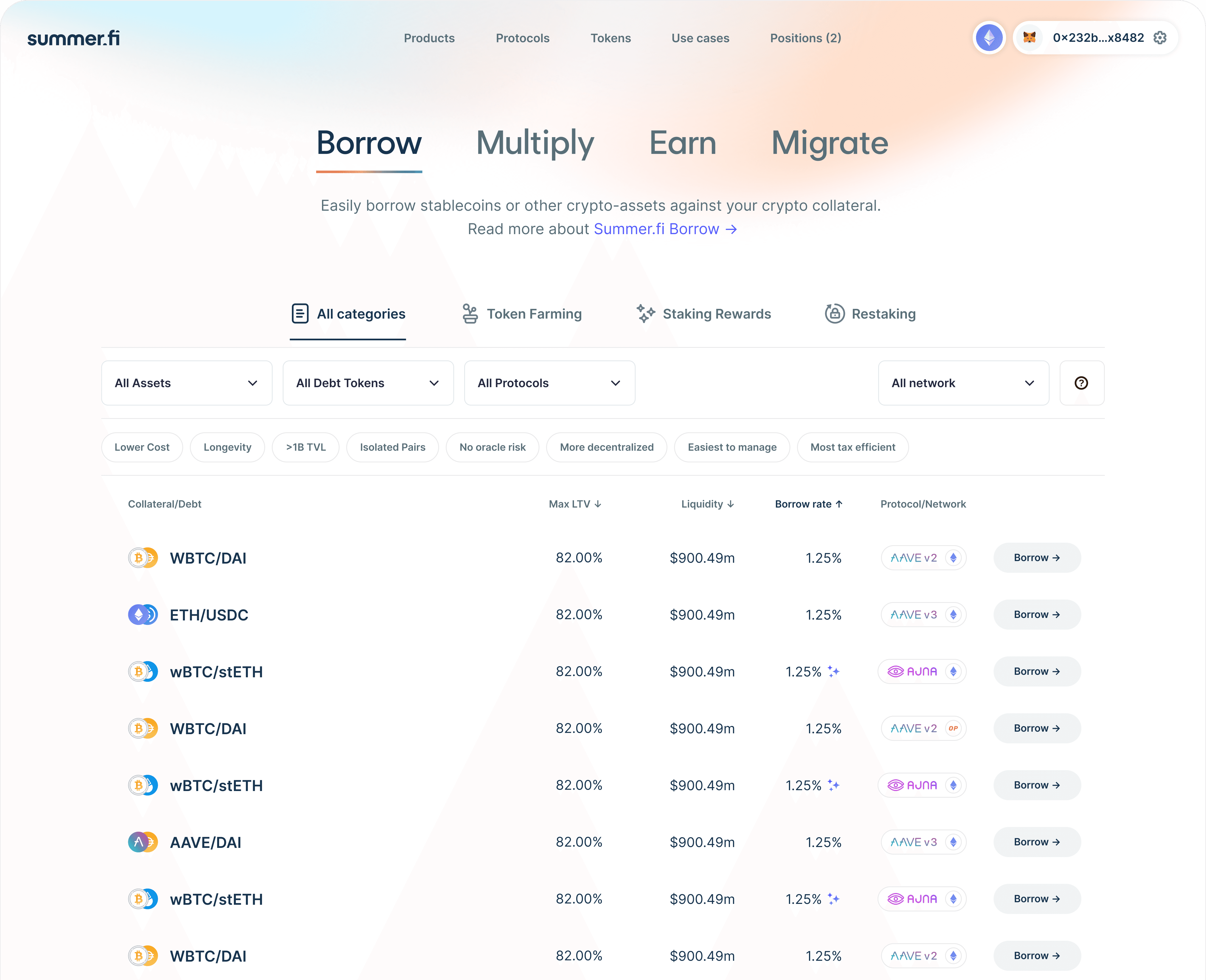 Summer.fi began as the primary interface for MakerDAO’s CDP, allowing users to borrow DAI. We later evolved the platform into a comprehensive DeFi hub with Multiply and Earn products, eventually managing over $5B in digital assets during its peak.